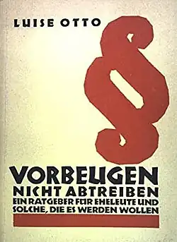 - Luise Otto: Vorbeugen – nicht abtreiben. : Ein Ratgeber für Eheleute und solche, die es werden wollen. Zeichnungen Fritz Petters. Magdeburg : W. Pfannkuch, 110.000. Auflage 1929
