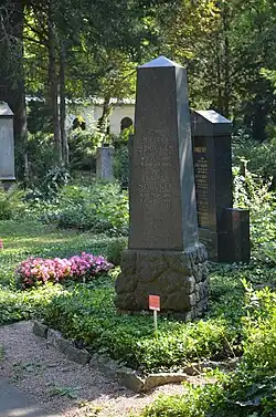 Sein Grabdenkmal auf dem Frankfurter Hauptfriedhof ist ein Obelisk aus Syenit auf rustiziertem Sockel. Es steht unter Denkmalschutz und ist als Ehrengrab ausgewiesen.