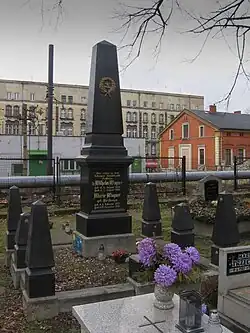 • Denkmal in der Stadtmitte von Königshütte (1908), Bronzeplatte mit Relief Wagners und Inschrift ALIIS INSERVIENDO CONSUMOR[10]