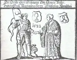 1512 erhielt Wilhelm von Graben von seiner Schwiegermutter Barbara von Baumkirchen von Stubenberg all deren Erbgüter zum Geschenk.[2] Im Jahre 1516 versetzten Wilhelm und sein Bruder Wolfgang ihre Güter in Pöllau dem Stift Vorau.[10] Laut dem Freiherr von Valvasor war Wilhelm im Jahre 1517 an der krainerischen Sankt Christophorus Gesellschaft beteiligt gewesen.[11] 1520 wurde er mitsamt seinen Brüdern Andree und Wilhelm von Graben durch Valvasor als Besitzer des Stammschlosses Graben nahe Novo mesto genannt.[12] Weitere Besitzungen hatte er an der südsteirischen Mur; dort standen u. a. die Dörfer Ottendorf, Heiligkreuz und Altendorf unter seiner Herrschaft.[13]