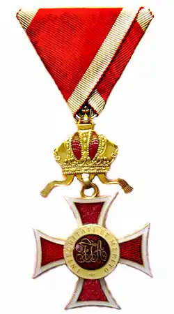 Vom König von Sachsen erhielt er 1854 das Ritterkreuz des Albrechts-Ordens.[10] Als Zeichen der Dankbarkeit und Verehrung erhielt Haidinger am 29. April 1856 als erster die nach ihm benannte Haidinger-Medaille, die höchste Auszeichnung, die seit ihrer Hundertjahrfeier von der Geologischen Bundesanstalt vergeben wird.[11] Im Jahre 1857 wurde er in den Orden Pour le Mérite für Wissenschaften und Künste aufgenommen. Mit Allerhöchster Entschließung vom 30. Juli 1864 verlieh ihm Kaiser Franz Joseph das Ritterkreuz des Leopold-Ordens und erhob ihn entsprechend den Statuten dieses Ordens mit Diplom vom 21. Oktober 1864 als "Ritter von Haidinger" den erblichen österreichischen Ritterstand.[12]