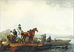 Die Zeitumstände boten dem Landschafts- und Tiermaler Kobell als weiteres Sujet das Militär an. In Mannheim und später auch in München sah er neben einheimischen österreichische und französische Truppen.[12] Im Zweiten Koalitionskrieg besetzte Moreau 1800 die Staaten Max Josephs (1799–1825), der sich wie sein Vorgänger den Gegnern Frankreichs angeschlossen hatte. Schließlich besiegte der französische General Österreicher und Bayern bei Hohenlinden. In der Folge wurde das Kurfürstentum – durch Montgelas einer Revolution von oben unterzogen, mit dem Segen Napoleons vergrößert und zum Königreich erhoben – ein Satellitenstaat Frankreichs.