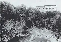 Die für die Region ungewöhnlichen steilen Hänge wurden zu einer romantischen Gebirgslandschaft gestaltet. Es wurden steile Serpentinenwege angelegt, die hinab zum 24 Meter tiefer liegenden See führten. In dem Felsen bestand ein Tunnel. Auf dem auch als Schwanenteich bezeichneten See gab es ein Schwanenhäuschen. Es hatte im Dunkeln eine prächtige bengalische Beleuchtung. Auf dem Teich konnten Ruderboote ausgeliehen werden. Die durch die Steilwände geprägte Akustik führte dazu, dass im Steinbruch gerne Chöre auftraten.[1]