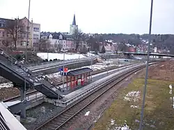 Am Haltepunkt Wilkau-Haßlau besteht Anschluss an die Bahnstrecke Zwickau–Schwarzenberg der Erzgebirgsbahn. Bis 1973 verkehrte ab hier auch die Schmalspurbahn Wilkau-Haßlau–Carlsfeld.