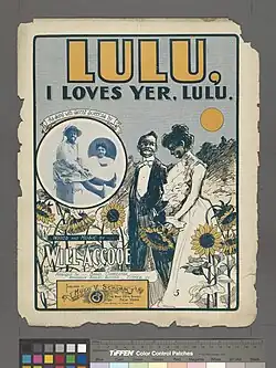 - Lulu. I loves yer, Lulu. Text und Musik: Will Accooe, gesungen von Jenny Eddy, publiziert bei Hugo V. Schlam, 1901[6][Digitalisat 7]