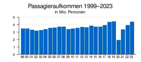 | Jahr | Fluggastaufkommen | Luftfracht (Tonnen) (mit Luftpost) |