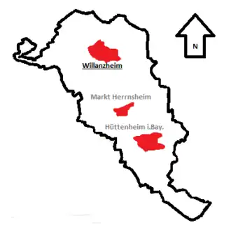 - ↑ Markt Willanzheim, Liste der amtlichen Gemeindeteile/Ortsteile im BayernPortal des Bayerischen Staatsministerium für Digitales, abgerufen am 3. Juli 2025.