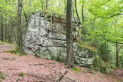 In der Nähe der Karlsschanze steht ein Opferstein, der „Faule Jäger“. Er ist etwa 6,0 m hoch und hat einen Umfang von 24,0 m. Hier sollen heidnische Sachsen ihren obersten Gott Wodan angebetet und ihm Opfer dargebracht haben. Mit der Ausbreitung des Christentums hörten diese Opferfeste allmählich auf. Aus Wodan wurde der „Hakelbernd“ (Mantelträger) oder der „Wilde Jäger“.[26]