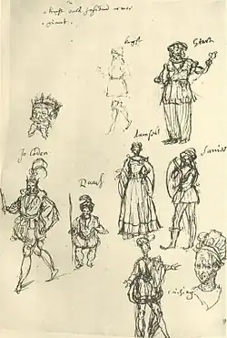 In den frühen Stücken Davenants wie etwa The Cruel Brother (1630) oder Albovine (1629) ist demgegenüber noch eine deutliche Anlehnung an die Tradition der blutrünstigen jakobäischen Tragödie festzustellen.[4]