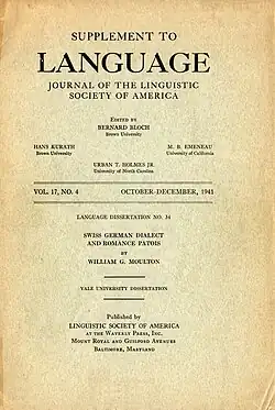 - ↑ William G. Moulton: Swiss German dialect and Roman patois. Baltimore 1941 (Supplement to Language 17.4, Language dissertation 34).