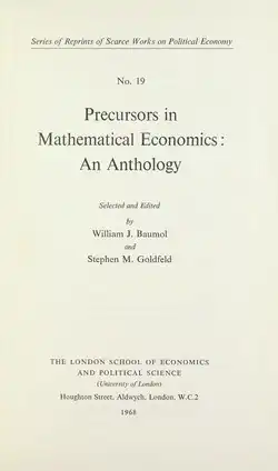• mit S. M. Goldfeld: Precursors in Mathematical Economics: An Anthology. 1968