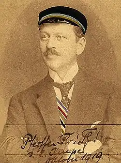 Pfeiffer studierte zunächst vier Semester Medizin an der Eberhard Karls Universität. 1898 wurde er im Corps Rhenania Tübingen recipiert.[1] Danach studierte je ein Semester in Erlangen und Kiel, bevor er wieder nach Tübingen zurückkehrte und dort sein Studium 1903 mit der Promotion zum Dr. med. abschloss.[2] Von 1903 bis 1911 war er Assistent bei Spieß an der Universitätsklinik in Frankfurt am Main und betrieb mit diesem auch eine Privatpraxis. 1917 habilitierte er sich.[3] Er wurde zum Leiter der Poliklinik für Hals- und Nasenleiden im Universitätsklinikum Frankfurt ernannt und erhielt ein Extraordinariat. In seiner Frankfurter Zeit war er 1919 maßgeblich an der Rekonstitution des aus Prag vertriebenen Corps Austria beteiligt. Als Rekonstitutionsphilister erhielt er das Austrianerband.[1] Er erlag 1937 einer Sepsis, die er sich bei einer Operation zugezogen hatte.