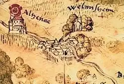 In der ersten Hälfte des 15. Jahrhunderts wurde Wilmundsheim durch die Pest zur Wüstung, zerstört und teilweise wieder aufgebaut. Die Einwohner wählten für ihren neuen Ort den Namen der Burg.[3] So schrieb man noch im Jahre 1487 Wolmetßheim bey Altzenahe und schon 1529 Altzenaue.[1] Im Jahre 1592 bestand Alzenau aus 32 Häusern. Aus dem Gericht Wilmundsheim wurde schließlich das Gericht Alzenau.