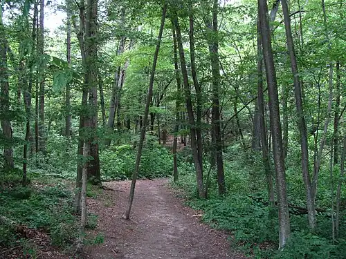 ![]() Ein in das Schutzgebiet führender Wanderweg | ||