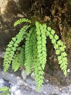 - Zierlicher Wimperfarn (Woodsia pulchella Bertol., Syn.: Woodsia glabella subsp. pulchella (Bertol.) Á.Löve & D.Löve): Er kommt in Spanien, Frankreich, Deutschland, Italien, Österreich, in der Schweiz, in Slowenien, Rumänien und in Georgien vor.[5]