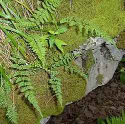 Rostroter Wimperfarn (Woodsia ilvensis) in Maine (USA) | ||||||||||||