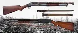 In den Weltkriegen wurden kurzläufige Vorderschafts-Repetierflinten M1897 und M1912 in großer Zahl zur Ausrüstung der Infanterie an die US-Armee geliefert.