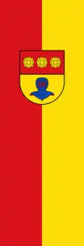 Banner: „Das Banner ist rot-gelb längsgestreift mit dem aufgelegten Wappen oberhalb der Mitte.“ |