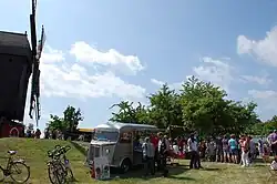 Die Bockwindmühle wurde im Jahr 1864 errichtet. Ursprünglich waren zwei der vier Flügel der Mühle mit Hecht’schen Jalousien, die anderen mit einer Besegelung ausgestattet. Nach dem Verfall der Mühle wurde sie ab 1995 schrittweise saniert, alle Flügel sind heute für Besegelung ausgerüstet.