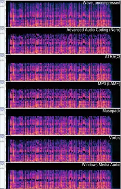 Andere Verfahren und Formate digitaler Audiodatenkompression sind: AAC, ATRAC, MP3, Musepack, Opus, Vorbis, Speex.