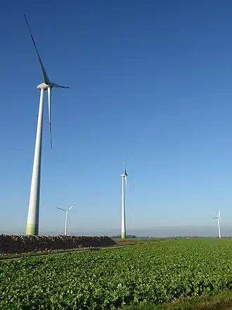 Die erste Windenergieanlage wurde 2011 von ABO Wind errichtet und ging im Juni 2011 ans Netz. Es handelt sich um eine Vestas V90 mit 2 MW Leistung, mit der jährlich 3,5 GWh erzeugt werden sollen.[1]