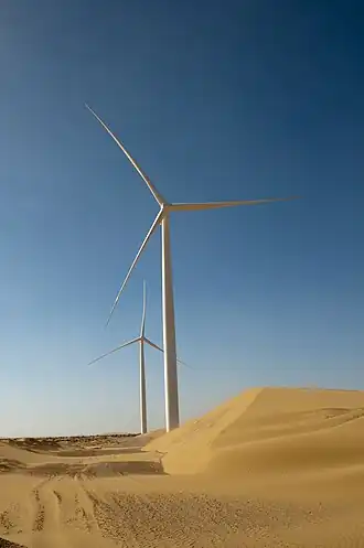 Der Windpark Tarfaya im Süden Marokkos, 20 km südlich der Stadt Tarfaya, wurde am 8. Dezember 2014 in Betrieb genommen.[2][5][6] Der Windpark erstreckt sich über 8.900 Hektar und verfügt über 131 Windkraftanlagen des Herstellers Siemens Windenergie mit jeweils einer Leistung von 2,3 Megawatt (MW) und einem Rotordurchmesser von 101 Metern, zusammengenommen 301,3 MW.[2][5][1][3]