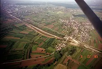 ![]() Luftaufnahme von Windschläg während der Bauarbeiten an der Rheintalbahn (1993)
