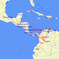 Wingo neben Zielen innerhalb Kolumbiens auch Ziele in anderen Ländern Mittel- und Südamerikas an.[3]
