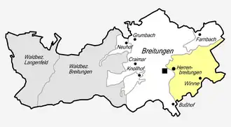 Die urkundliche Ersterwähnung des damals angesiedelten landwirtschaftlichen Gutes erfolgt am 13. September 1137.[1] Zu Breitungen gehörten einige angesiedelten Einzelhöfe, die sich dann auch weiter entwickelten.[2] Dazu gehört auch Winne. Der Hof gehörte zum Amt Herrenbreitungen in der hessischen Herrschaft Schmalkalden, später zur Gemeinde Herrenbreitungen und kam erst 1944 zu Thüringen.