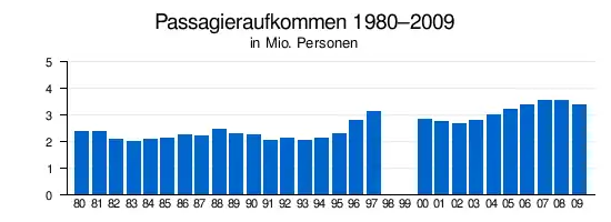Jahr Fluggastaufkommen Luftfracht (Tonnen) Flugbewegungen