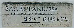An der Mosel ist das Eishochwasser 1784 das bis heute höchste durch Hochwassermarken bezeugte Winterhochwasser.[13] In Trier wurde der Höchststand des Wassers am 28. Februar 1784 beobachtet. Das Wasser reichte dort bis zum Pferdemarkt und in die Jakobsgasse hinein.[14] An der Alten Kommandantur am Großen Markt in Saarlouis befindet sich eine Tafel, die den Wasserstand der Saar von 1784 markiert.