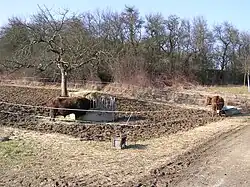 Futterplatz auf einer Winterweide im Februar.