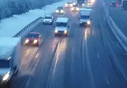 - Auch gefrierender Schneematsch führt zu Schneeglätte.