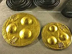 Die Gegend um Winzendorf-Muthmannsdorf ist – archäologisch belegt – seit mindestens 6000 Jahren besiedelt. 1975 wurden auf einem Acker Silices gefunden, aus der frühen Bronzezeit stammt ein Bronzeflachbeil und Hallstattscherben wurden auf dem Weg zur Ruine Dachenstein gefunden.[3] Die Funde im westlichen und nördlichen Teil der Neuen Welt reichen bis in die Jungsteinzeit zurück. Die vielen Höhlen im Kalkstock der Hohen Wand sowie in den Fischauer Vorbergen boten den Menschen einen sicheren natürlichen Zufluchtsort. Zu den bekanntesten Fundplätzen gehört die Schwarzgrabenhöhle bei Maiersdorf (Gemeinde Hohe Wand). In den 1920er Jahren wurden dort vom Franz Mühlhofer Knochenwerkzeuge sowie die Knochen der Beutetiere der steinzeitlichen Jäger wie Höhlenbär, Höhlenlöwe, Höhlenhyäne, Mammut, Riesenhirsch, Wollnashorn, Rentier, Eisfuchs oder Schneehase gefunden.[4] In einer weiteren Höhle am Fuße der Hohen Wand, in der „Rauchlukn“ fand man eine neolithische Schicht mit Tonscherben und einem Bruchstück eines Tonlöffels.[5] Reste einer sehr alten Behausung (Wohnringe) gibt es unweit der Kirche in Maiersdorf. Außergewöhnlich ist der Depotfund von Stollhof aus dem Jahre 1864.[6] Die zwei Goldscheiben (aus Südosteuropa) sind der zweitältesten Goldfund der Welt und namensgebend für ähnlichen Schmuck (Typ Stollhof). Kupferschmuck und Goldscheiben beeindrucken nicht nur als Schmuckstücke, sondern zeigen die frühe Nutzung von Bodenschätzen der Gegend. Im Bereich der Malleiten, ca. 7 km nordöstlich in den Fischauer Vorbergen bei Dreistetten reichen die ältesten Funde bis ins 5. Jahrtausend vor Christus zurück. Später in der Urnenfelderkultur und Hallstattzeit (ca. 1300–450 v. Chr. v. Chr.) gab es dort eine Höhensiedlung. Das bekannteste Fundstück ist ein Feuerbock (Mondidol) von ca. 800 Chr. v. Chr.[7] Vor Christi Geburt war das Gebiet Teil des keltischen Königreiches Noricum und gehörte zur Umgebung der keltischen Höhensiedlung Burg auf dem Schwarzenbacher Burgberg. In der Römerzeit lagen die heutigen Orte Winzendorf und Muthmannsdorf in der Provinz Pannonia. Auf Basis von Funden aus der Römerzeit konnte im Raum Wiener Neustadt ein Netz von Straßen und lokalen Verkehrswegen rekonstruiert werden, das auch die Gemeinde Winzendorf-Muthmannsdorf einschloss.[8] Noch heute erinnert der „Römerweg“, der von Brunn nach Willendorf führte, daran. Für Winzendorf kann man aufgrund der vielen Funde von einer Siedlung (vicus) ausgehen. In Muthmannsdorf gibt es weniger Funde, die auf eine römische Siedlung hindeuten. Es ist aber wahrscheinlich, dass durch die „Neue Welt“ eine Römerstraße von Vösendorf / Sollenau kommend über Dreistetten, Muthmannsdorf, Würflach weiter nach Neunkirchen ging. Ein Stiertötungs-Relief aus der Mitte des 3. Jahrhunderts, das um 1886 in Winzendorf gefunden wurde, zeugt vom römischen Mithraskult in der Gegend.[9] Mit der Durchsetzung des Christentums im Römischen Reich verschwand diese nur von Männern an meist abgelegenen Orten wie Höhlen praktizierte Religion innerhalb weniger Generationen. Neben den Reliefplatten[10] wurde in einem Weingarten auch eine Votivara aus Kalkstein gefunden, die dem Mithras von einem Stallmeister der 10. Legion geweiht war.[11]