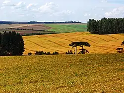Die Landwirtschaft trug 2023 etwa 6–7 % zum Bruttoinlandsprodukt bei. Er beschäftigte 2024 acht Millionen Menschen, wobei fast 30 Millionen Brasilianer in eng mit der Landwirtschaft verbundenen weiterverarbeitenden Sektoren arbeiten.[17] Obwohl ihr Anteil an der Gesamtwirtschaft seit Mitte des 20. Jahrhunderts kontinuierlich sank, ist Brasiliens Agrarsektor global herausragend: Das Land ist einer der größten Agrarexporteure der Welt. Brasilien ist der größte Produzent von Kaffee, Orangen, Zuckerrohr und Sisal sowie einer der führenden Produzenten von Sojabohnen, Kakao, Baumwolle, Mais, Tabak, Rindfleisch und Geflügel.[4] Besonders die Sojawirtschaft erlebte in den letzten Jahrzehnten einen Boom, oft spricht man halbironisch von einem neuen „Soja-Zyklus“ als Fortsetzung der historischen Rohstoffzyklen.[5] Der Agrarsektor profitierte von modernisierter Technologie (z. B. tropentaugliche Sojasorten aus EMBRAPA-Forschung) im Rahmen der Grünen Revolution und großen fruchtbaren Flächen im Cerrado (Mittelwesten) und war auch im 21. Jahrhundert weiterhin ein wichtiger wirtschaftlicher Wachstumstreiber. Allerdings wird die extensive Expansion auch kritisch gesehen, etwa wegen Entwaldung im Amazonas-Regenwald. Brasilien hat sich vom Netto-Importeur von Nahrungsmitteln (bis in die 1970er) zu einem „Brotkorb“ der Welt gewandelt. Insgesamt ist die Landwirtschaft ein starker Devisenbringer und wichtiger Bestandteil von Brasiliens Außenhandel (allein Sojabohnen machen 15 % der Ausfuhren aus).[18]