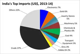- ↑ a b Table 130 : Imports of Principal Commodities – US Dollar. Reserve Bank of India, 15. September 2017, abgerufen am 30. Dezember 2017 (englisch).