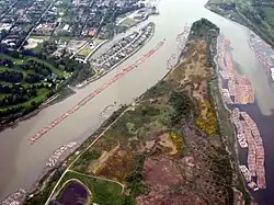 British Columbias Exportraum waren Asien und die USA, doch seine Waren erstand es in Kanada. Seine Rohstoffe, vor allem Holz, gingen in den Süden und Westen, seine Fertigwaren kamen aus dem Osten.[18] Vancouver wurde für den Weizen der Prärien bis nach Saskatchewan zur Handelsdrehscheibe. Seit den 1950er Jahren kam mit Fertigstellung der Trans Mountain Pipeline Erdöl nach Vancouver, das vor allem in Kalifornien nachgefragt wurde. Ähnliches galt für Schwefel, so dass sich die wirtschaftliche Bindung des Westens an den Osten und Europa lockerte.