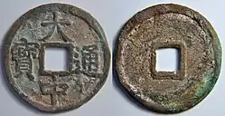 Weitere Prägungen, die in der gleichen Periode, allerdings nicht auf Anordnung von Xiao Zong hergestellt wurden, tragen die Schriftzeichen Taiding Tongbao (太定通寶) und Tai Ping Xin Bao (太平通寶). Letztere Variation besitzt unterschiedliche Lesungen und ist daher auch als Huo Ping Xin Bao bekannt.[31]