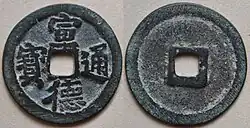 In 1402 wurde die Münzproduktion wiederaufgenommen, diesmal mit der Prägung Yongle Tongbao (永樂通寶). In dieser Zeit entwickelte sich auch der Handel mit Japan, wodurch auf der Inselgruppe vermehrt chinesische Münzen eingeführt wurden, die man dort als „Toraisen“ bezeichnete.[30]