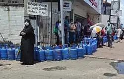 Die Regierung nahm am 8. März 2022 eine Abwertung der sri-lankischen Rupie vor[16] und bat am 19. April den Internationalen Währungsfonds (IMF) offiziell um Finanzhilfe.[17] Die von ihr verhängten Importrestriktionen führten zur starken Verknappung insbesondere von Treibstoff und zu Preissteigerungen bei Nahrungsmitteln und Medikamenten. Ärzte warnten vor einer humanitären Katastrophe beim Fehlen lebensnotwendiger Medikamente.[18] Die Inflationsrate betrug im Vergleich zum Vorjahr im März und April 2022 18,7 bzw. 29,8 Prozent. Besonders betroffen waren Nahrungsmittel mit 46,6 Prozent Preissteigerung im April 2022 im Vergleich zum Vorjahr.[19]
