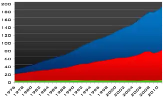 Ausgewählte Zahlen aus den Fischer Weltalmanachen 2008 und 2012.[9][10]