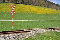An Bahnübergängen von Wirtschaftswegen ist es nach § 11 EBO nicht notwendig, ein Andreaskreuz (Zeichen 201 StVO) zur Warnung des Straßenverkehrs aufzustellen. Der Schienenverkehr hat immer Vorfahrt.