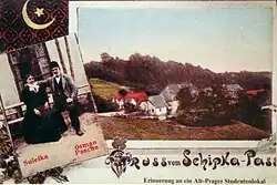 Im Russisch-Osmanischen Krieg standen die Tschechen ganz auf der Seite der slawischen Völker. Auch die Deutschen waren anfangs gegen ihren alten osmanischen Gegner eingestellt; aber als die Disziplin und Tapferkeit der türkischen Truppen in der Schlacht am Schipkapass bekannt wurden, wechselten die Sympathien der Prager Deutschen nach und nach zu den Türken. So uneins wie die Prager Bevölkerung waren auch drei deutsche Medizinstudenten an der Karl-Ferdinands-Universität. Im August 1877 waren sie im Nordwesten der Hauptstadt in das Gasthaus über der Scharka eingekehrt. Der hünenhafte Wirt trug einen Fes, den er am Vortag einem Zechpreller abgenommen hatte. Am Fes entzündete sich ein Streitgespräch um Russen und Türken. Bei seinem Bart und kriegerischen Aussehen verglich man den Wirt bald mit dem Feldherrn Osman Nuri Pascha. Nach einigen Bieren wurde das Wirtshaus zum „Schipkapaß“ und die Umgebung zum „Balkan“. Tatsächlich erinnerte die Lage des Gasthauses an einen Gebirgspass. Der Wirt, Moritz Milde, erhielt den Spitznamen Osman Pascha; seine Frau wurde Sulaika gerufen, die Köchin Zoraide und der jüdische Kellner Sigmund Pick erhielt den Spitznamen Abraham.[3] Die drei Studenten beschlossen, das Lokal in die Prager deutsche Studentenschaft einzuführen. Schon bald nach der Eröffnung wurde der Schipkapaß zu deren Bierstaat.[4]