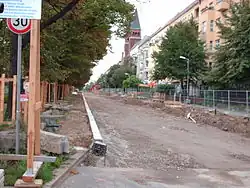 Bei Straßenbaumaßnahmen wurde seit 2006 der Straßenbelag mit Kopfsteinpflaster durch Asphalt ersetzt. Dabei wurden beidseitig Radwege angelegt.[17] Dadurch hat sich die Situation auf der sehr stark befahrenen West-Ost-Straße gebessert und bietet den Anwohnern mehr Schutz vor Lärmbelästigung, den Radfahrern eine gute Verkehrsanbindung. Für sechs Millionen Euro wurden in den Jahren 2006–2008 die Fahrbahn und der Gehweg komplett erneuert.