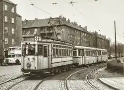 Die durch die Stahlheimer Straße zur Pappelallee führende Straßenbahnführung verlief bis 1966 von der Kreuzung Wisbyer/Ostseestraße die Prenzlauer Allee einige Meter weiter nach Süden und wurde durch die Krügerstraße südöstlich um den Humannplatz, die Gudvanger und Wichertstraße zur Stahlheimer Straße geführt.[28]