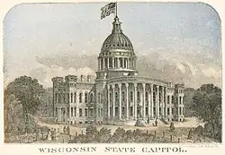 In der zukünftigen Hauptstadt, Madison, die zu dem Zeitpunkt auch zum Großteil nur auf dem Papier existierte, befand sich bereits am Standort des heutigen State Capitols ein kleines Kapitol im Bau. Es wurde bald zu klein und zwischen 1857 und 1869 durch einen größeren Neubau mit Kuppel ersetzt. Dieser musste ebenfalls bald erweitert werden und ab 1903 zog man erneut einen Neubau in Betracht. Ein großes Feuer im Jahre 1904 machte den Weg hierfür frei.[4][5][6]