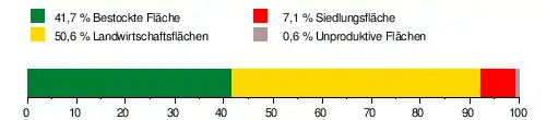 Es besteht zu 41,7 % aus Bestockter Fläche, zu 50,6 % aus Landwirtschaftsfläche und zu 7,1 % aus Siedlungsfläche und zu 0,6 % aus unproduktiven Flächen.