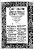 - Titelseite und Abbildungen aus Summa de Arithmetica, Geometria, Proportioni et Proportionalità