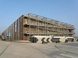 - ein zweigeschossiges Gebäude auf einem L-förmigen Grundriss mit 15.000 m² Nutzfläche für Ausstellungsräume, Labors, einem Konferenzzentrum, einem Restaurant und Café sowie Büroräumen