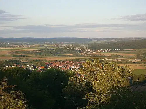 Im Vordergrund Beltershausen, im fernen Hintergrund der 592 m hohe Rimberg